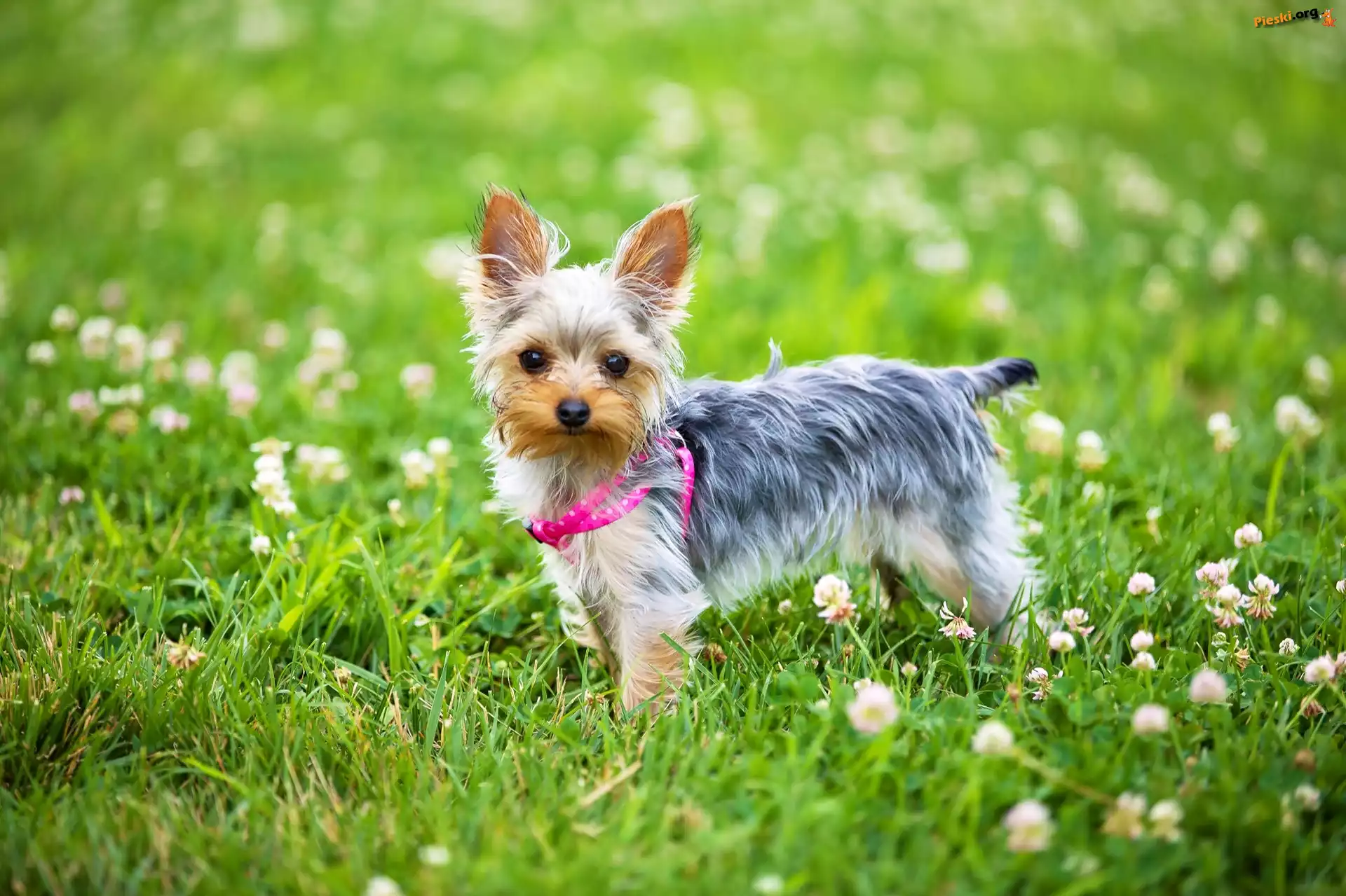 Yorkshire terrier, Łąka, Koniczyna, Pieski